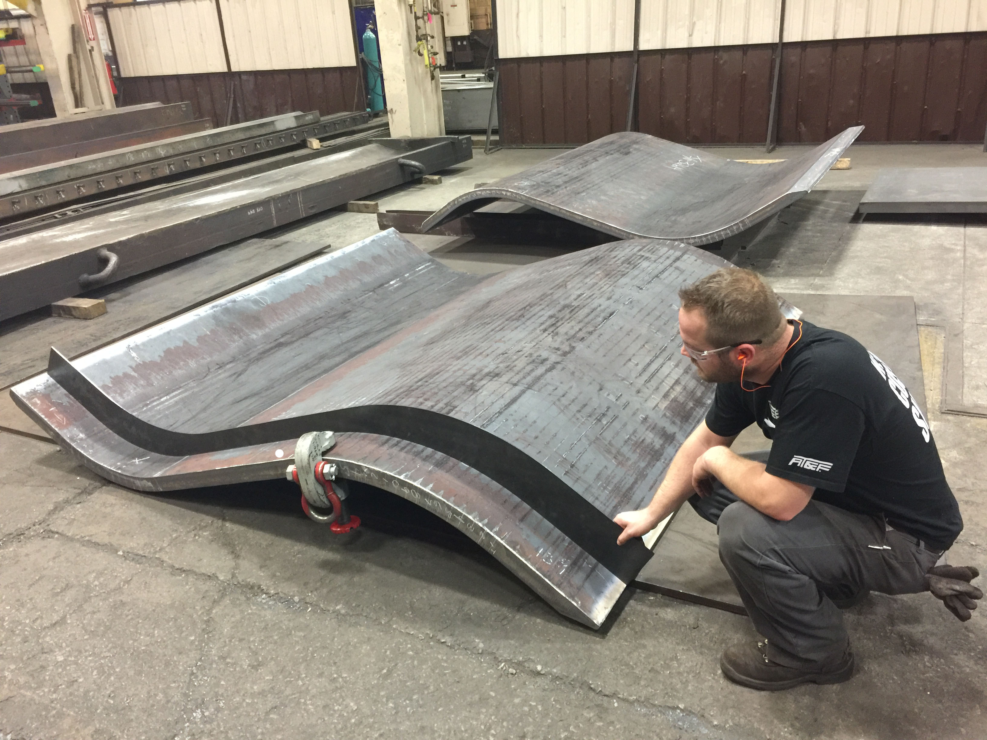 AT&F is big in the railcar industry. For train cars to maximize the load size, cars will be fitted with s-shaped plates that drop the load between the wheels. The depressed railcar transition pieces are made from 2 ½ inch A514 steel, a very strong grade of steel that is difficult to form. AT&F proved its ability to form the heavy pieces to tight tolerances and added value in keeping the job domestic. The strength of the part is maximized due to the properties of arches, which lends itself to bigger loads. These larger loads benefit from the depressed seating in that height is shaved off the load, allowing for heavy loaded trains to easily pass through tunnels. AT&F takes pride in pushing the limits of size and scale and delivering quality parts where other fabricators fall short.